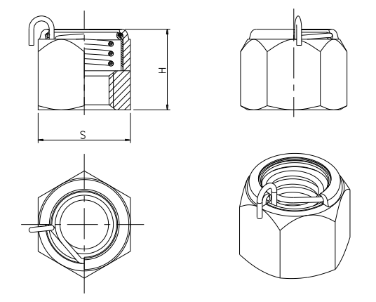 彈簧嵌件式防鬆螺母利用彈簧的張緊特性,在較小緊固力矩或無力矩狀態依然具有良好的防鬆性能,經 1200 次橫向振動試驗後殘餘軸力不低於 70%。彈簧螺母本體材質為 304B 優質奧氏體不鏽鋼,性能等級為 A2-70,螺紋采用可靠防咬死工藝處理。