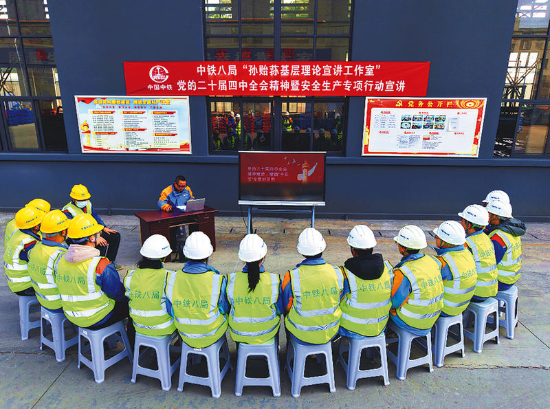 12月10日,中鐵八局“孫貽蓀基層理論宣講工作室”副組長、四川工匠、工(gong)匠(jiang)技(ji)師(shi)裴(pei)安(an)斌(bin)深(shen)入(ru)生(sheng)產(chan)一(yi)線(xian),組(zu)織(zhi)開(kai)展(zhan)黨(dang)的(de)二(er)十(shi)屆(jie)四(si)中(zhong)全(quan)會(hui)精(jing)神(shen)暨(ji)安(an)全(quan)生(sheng)產(chan)專(zhuan)項(xiang)行(xing)動(dong)專(zhuan)題(ti)宣(xuan)講(jiang),將(jiang)黨(dang)的(de)創(chuang)新(xin)理(li)論(lun)成(cheng)果(guo)與(yu)上(shang)級(ji)安(an)全(quan)生(sheng)產(chan)要(yao)求(qiu)精(jing)準(zhun)傳(chuan)遞(di)至(zhi)生(sheng)產(chan)一(yi)線(xian),為(wei)企(qi)業(ye)改(gai)革(ge)發(fa)展(zhan)注(zhu)入(ru)強(qiang)大(da)的(de)思(si)想(xiang)動(dong)能(neng)與(yu)堅(jian)實(shi)的(de)安(an)全(quan)支(zhi)撐(cheng)。