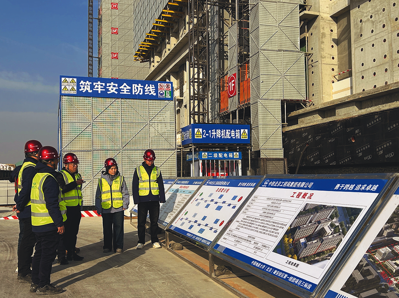 近日,中鐵北京局北京公司組織在建項目開展“黨建引領凝心聚力 築牢安全生產防線”主題黨日活動,引導黨員幹部落實安全責任,助力項目建設平穩推進。圖為所屬中國地質大學(北京)雄安校區項目黨支部開展“黨建+安全”專項檢查。 張津瑜 攝