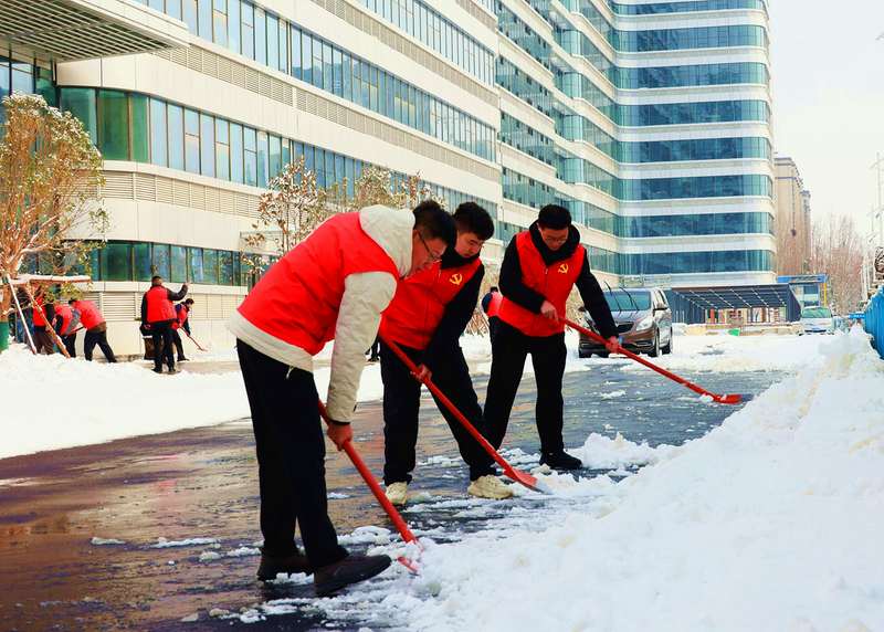 ①近日,中鐵十局二公司組織團員青年在鄭州航空港區總部基地開展義務除雪活動,以實際行動弘揚雷鋒精神,傳承誌願服務理念。 向煬 楊子征 攝影報道