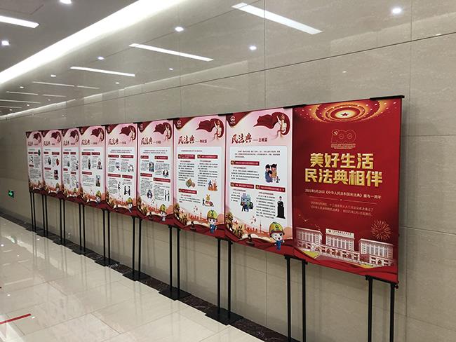 突出文化建設,營造濃厚的民法典學習宣傳氛圍。活動期間,各單位綜合運用報刊、網站、“兩微一端”等多種平台載體,統一標識、統一主題,製作了大量具有企業特色的民法典宣傳展板、掛圖、手冊、微視頻等普法產品。5月28日,股份公司在“中國中鐵”微信公眾號發布民法典專題內容,在總部黨史學習教育現場贈送全體員工《生活中的民法典》圖文讀本,並製作民法典係列宣傳展板;中鐵資本製作民法典學習微課、定製精美主題宣傳手冊,中鐵九局、中鐵工業等單位推送民法典普法小視頻在各類多媒體平台循環播放,提升全員法治意識,厚植“心中有法、行必依法、決策問法、治理靠法”的法治中鐵文化。