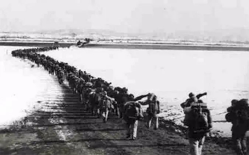 “那時候,老美(美軍)天天炸江上的大橋(鴨綠江斷橋),炸狠了修不過來。我們就在水下搭了浮橋,橋頂上有水,白天飛機過去的時候看不著(橋),等到了晚上,就趕緊從橋上把貨(物資)給運過去!”
