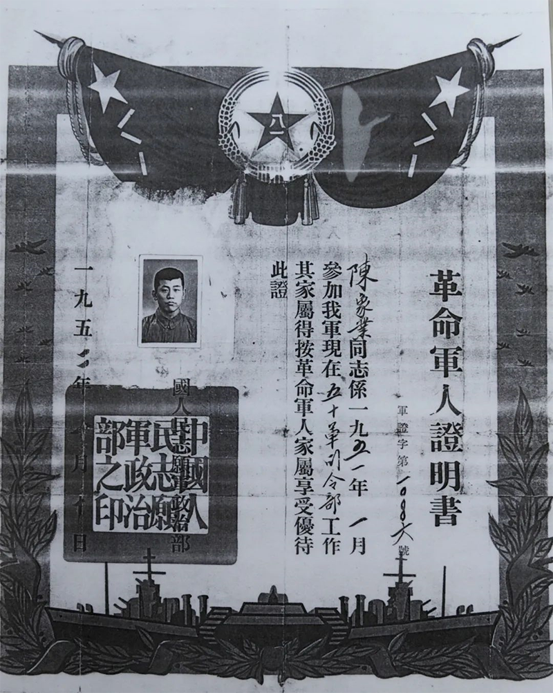 這是一張抗美援朝革命軍人證明書,照片上的人叫陳象業,是中國中鐵九局六公司離退職工。