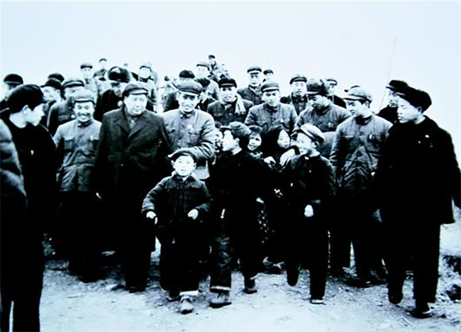 毛主席在長江大橋上觀看畫冊(左二為王任重,左三為楊在田)