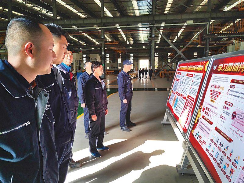 連日來,中鐵工業旗下中鐵寶橋轍叉公司通過網絡平台、會議傳達、討(tao)論(lun)學(xue)習(xi)等(deng)多(duo)種(zhong)形(xing)式(shi),紮(zha)實(shi)宣(xuan)貫(guan)五(wu)中(zhong)全(quan)會(hui)精(jing)神(shen),形(xing)成(cheng)濃(nong)厚(hou)的(de)學(xue)習(xi)氛(fen)圍(wei)。公(gong)司(si)還(hai)精(jing)心(xin)製(zhi)作(zuo)了(le)專(zhuan)題(ti)學(xue)習(xi)展(zhan)板(ban)置(zhi)放(fang)在(zai)生(sheng)產(chan)一(yi)線(xian),方(fang)便(bian)員(yuan)工(gong)學(xue)習(xi)領(ling)會(hui)全(quan)會(hui)精(jing)神(shen)要(yao)義(yi)。