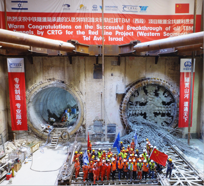 The Tel Aviv Light Rail System in Israel was proposed a total of 8 routes (i.e. red, green, pink, yellow, purple, blue, brown and orange lines) in total length of 220km with a total investment of approx. 100 billion Shekel (exchange rate 1 USD equivalent to 3.8 Shekel). It is estimated that the passenger flow in 2030 will reach 427 million in Tel Aviv, an average daily passenger flow of 1.42 million. The red line project is in total length of 23km, inclusive of 13km long ground line and 23 stations. The west segment of the Tel Aviv Light Rail Red Line comprises civil works of 6 stations and 3 running tunnels, of which the TBM driving tunnel is in total length of 11,793 linear meters. On May 19, 2015, the project employer NTA awarded the contract to joint venture of CRTG and Solel Boneh Infrastructure Ltd., an Israel local company. Acting as leading company, CRTG holds 51% of the shares in the joint venture.